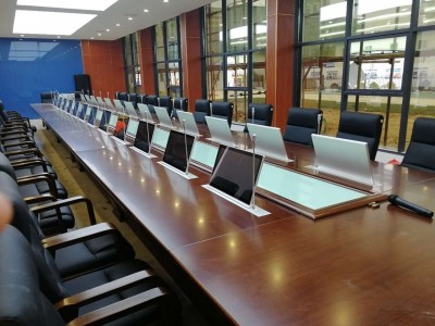 该产品为超薄液晶屏升降器,采用结构与屏体一体式设计,整机大部分采用铝合金材料,结合一次性模具成型的金属外壳,美观精致。产品动力采用直角叠加式齿轮与齿条啮合传递,直线轴承导向,完成垂直爬树式精准运动,外加自动开合门连杆结构,简单可靠,精度高,使开合动作完成后的运动面与固定台面始终保持平整。产品标配内嵌式15.6/17.3/18.5/21.5英寸全高清16:9液晶显示屏。 选配触摸板,支持10点触摸,即插即用。该产品是新时代无纸化会议或者视频会议室的产品,配合无纸化软件,可以实现众多功能,是与会人员之间信息化交互的重要工具。